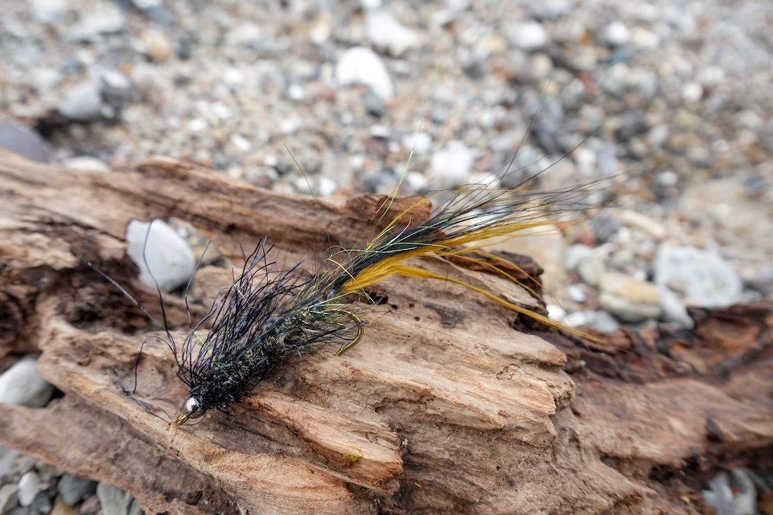 "Au début de ma carrière de pêcheur de truites de mer, j'ai bricolé avec les imitations de vers en plusieurs parties que je connaissais par les livres et les magazines. Très vite, j'ai été complètement agacé par ces trucs : stupides à lancer, stupides à attacher, stupides à détacher et globalement trop stupides. Après quelques essais avec de gros buggers Wooley sombres, j'ai compris que le design en deux parties avec des crochets à l'extrémité de la mouche était totalement inutile. J'ai optimisé ma mouche à vers pendant deux ou trois saisons et j'ai maintenant un modèle optimal pour moi. Malgré la quantité de matériel, elle se lance très bien, même avec une soie de 4, elle est très résistante et elle attrape toutes les truites qui mangent des vers. C'est en tout cas l'impression que j'ai eue à chaque fois que j'ai eu la chance d'être au bon endroit au bon moment. J'utilise généralement les mouches à vers en longues et lentes tirées. De temps en temps, des poissons particulièrement repus ne retiennent que la queue de la mouche. Mais si on la retire aussi lentement de la bouche d'un tel paresseux, la truite ne bronche pas et suit généralement presque immédiatement. La Special Borstenwurm est montée sur un hameçon de 6 à longue branche. En combinaison avec la longue queue en marabout fin, cette mouche se rapproche d'un véritable ver marin, surtout dans l'eau - et c'est ce qui compte !
