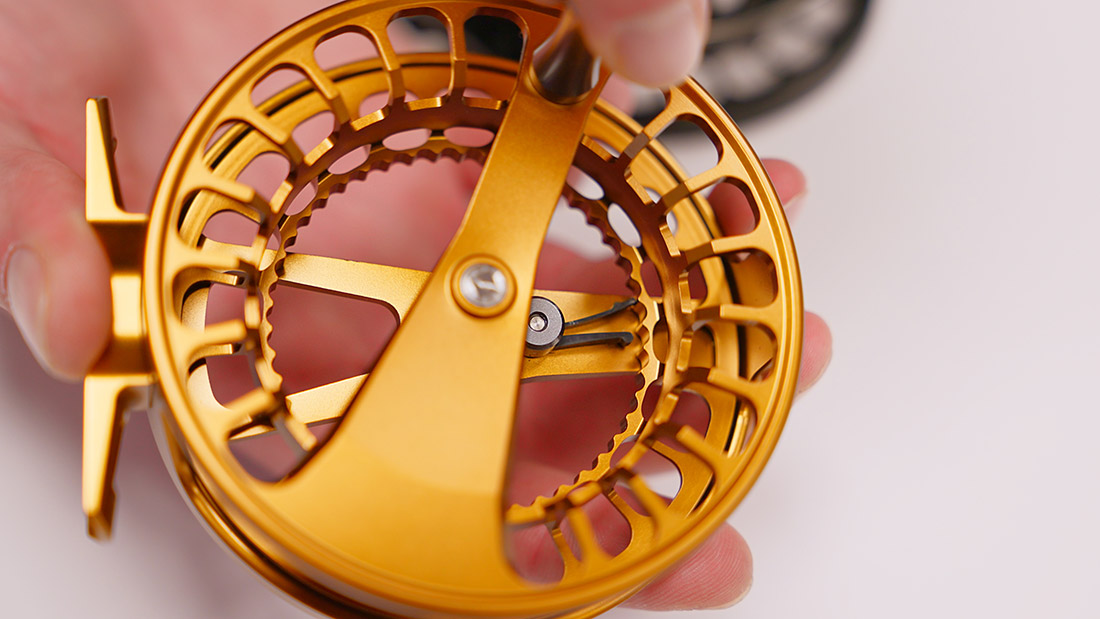 Au lieu d'un système de frein à disque complexe, Lamson mise ici délibérément sur le système traditionnel Click & Pawl. Il offre un feedback direct lors du combat et confère à chaque contact avec le poisson une note particulière. Le volume et la force du clic sont parfaitement adaptés - pas trop envahissants, mais nettement perceptibles. Une touche de modernité : à l'aide d'une petite clé Allen fournie, le clicker peut être ajusté le long d'un trou oblong. La résistance de freinage (tout comme le son du clicker) peut ainsi être légèrement adaptée aux besoins individuels.
