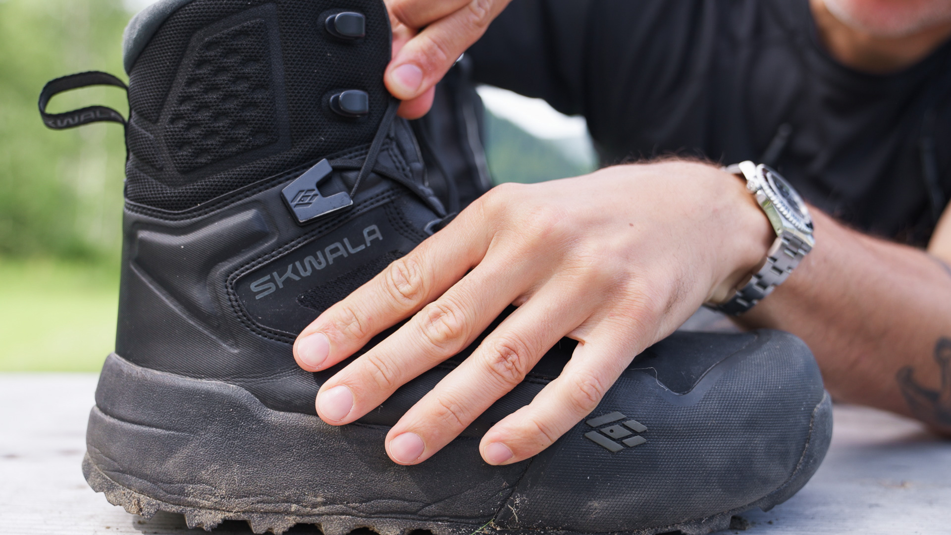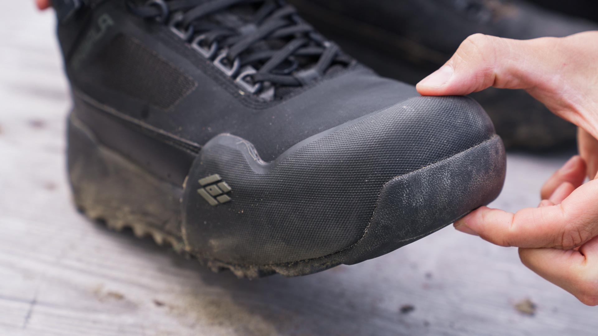 SKWALA mise également sur la durabilité du matériau extérieur. Dans la partie inférieure, la chaussure est dotée d'un renfort massif en TPU, extrêmement résistant à l'abrasion. La partie des orteils, en particulier, est très bien protégée par un embout préformé et caoutchouté.
