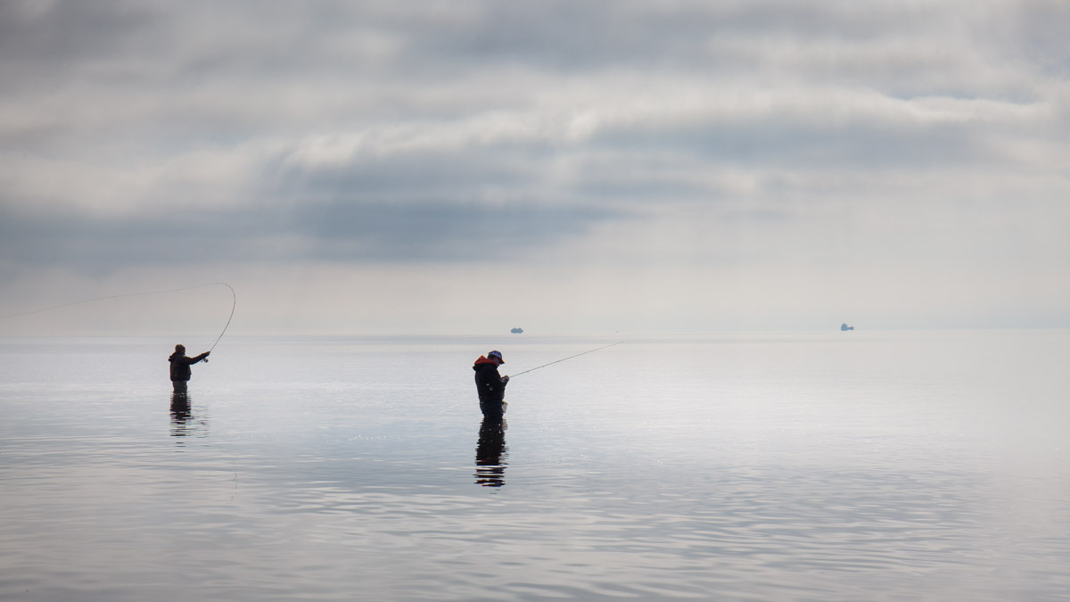 - Afin d'établir un contact immédiat avec la mouche, il est important que la ligne atterrisse tendue. Lorsque les truites de mer sont en pleine frénésie alimentaire, il arrive souvent que les touches surviennent directement après l'atterrissage !
