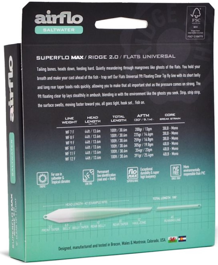 Informations sur les produits "Airflo Superflo Max Ridge 2.0 Flats Universal 9ft Clear Tip ligne à mouche flottante"