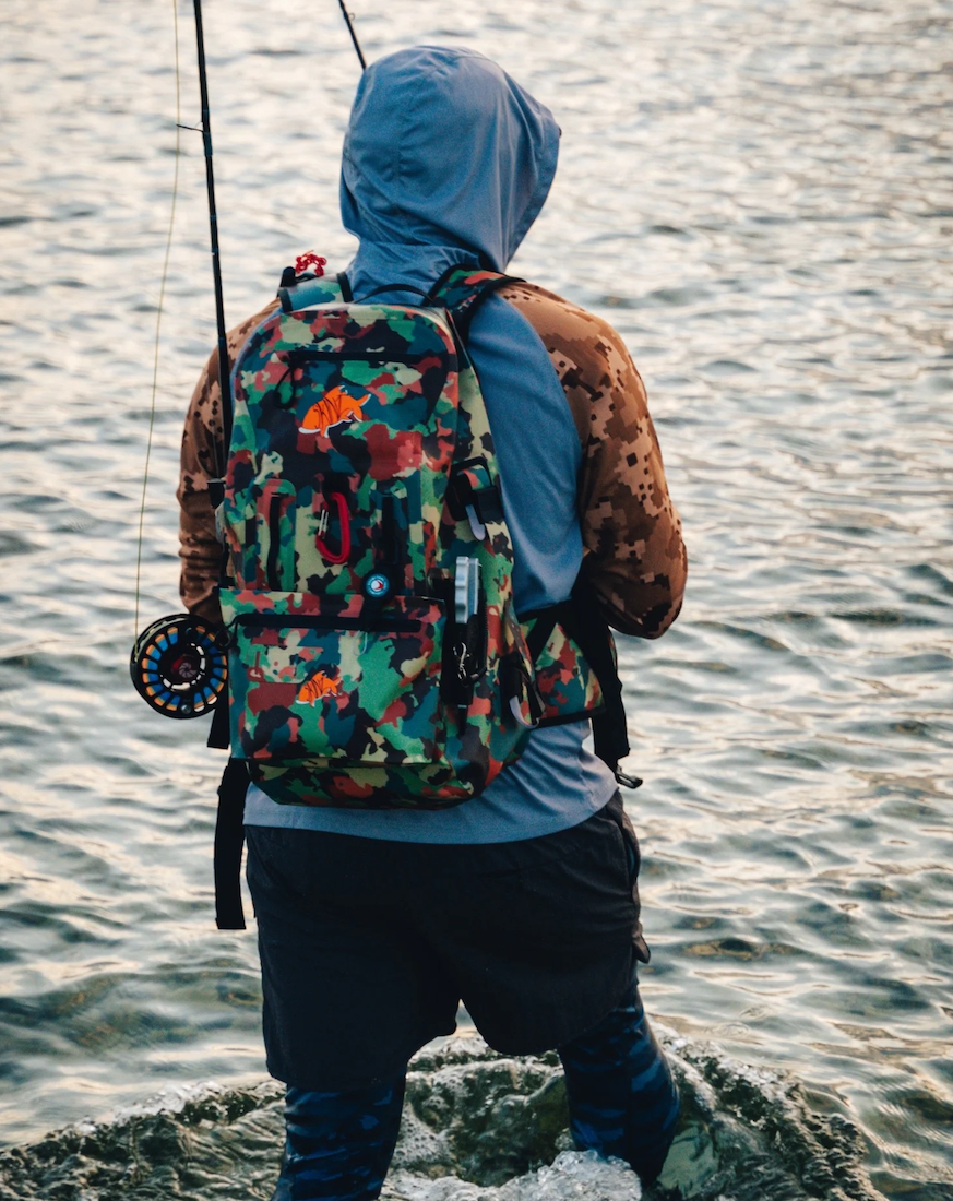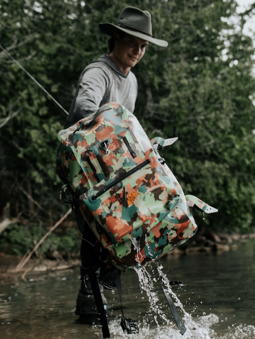 Une poche imperméable SherpaShield supplémentaire est fournie pour étendre les possibilités d'utilisation et peut être fixée séparément aux cuissardes, aux rafts ou à d'autres équipements. À l'intérieur, des compartiments d'organisation permettent de maintenir l'ordre, tandis que les sangles latérales réglables permettent de ranger deux tubes de canne ou d'autres accessoires. Les bretelles ventilées garantissent un grand confort de transport, même lors de longues randonnées. De plus, des points d'attache spéciaux sur les bretelles permettent de fixer facilement des équipements à portée de main.