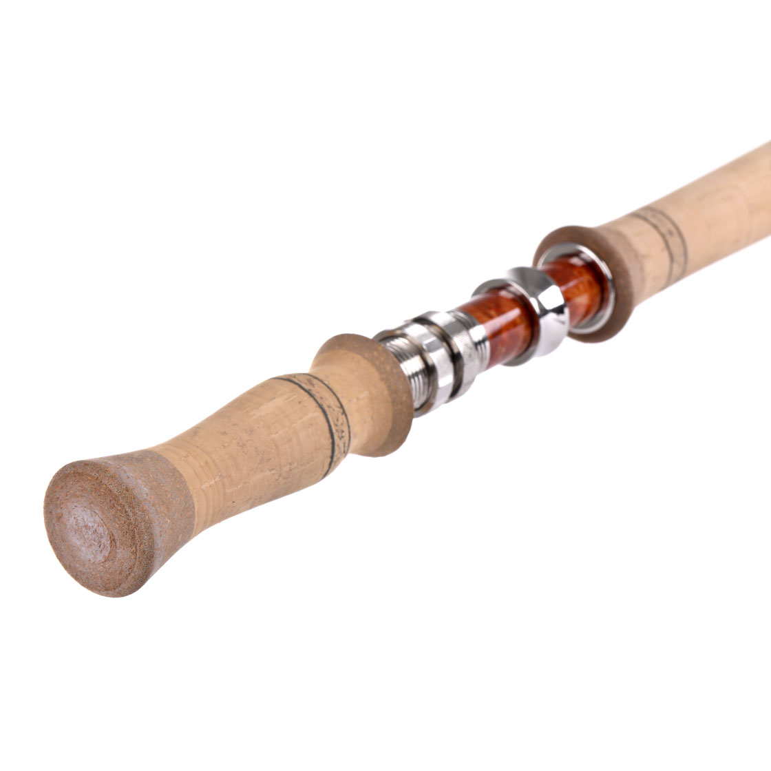 - Porte-moulinet up-locking intemporel avec deux contre-écrous et insert en bois de racine