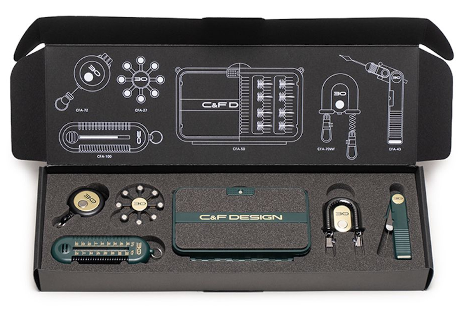 À l'occasion du 30e anniversaire de l'entreprise, C&F Design présente le 30th Anniversary Accessory Assortment - un ensemble exclusif de six accessoires originaux dans la couleur spéciale et limitée "Anniversary Green". Contrairement à de nombreux fournisseurs qui se contentent d'apposer un nouveau logo sur des produits standard existants, C&F Design développe ses outils et accessoires de A à Z - y compris sa propre conception de moules. Il en résulte des outils fonctionnels et parfaitement finis qui posent des jalons en matière de qualité, de longévité et d'aptitude à la pratique.