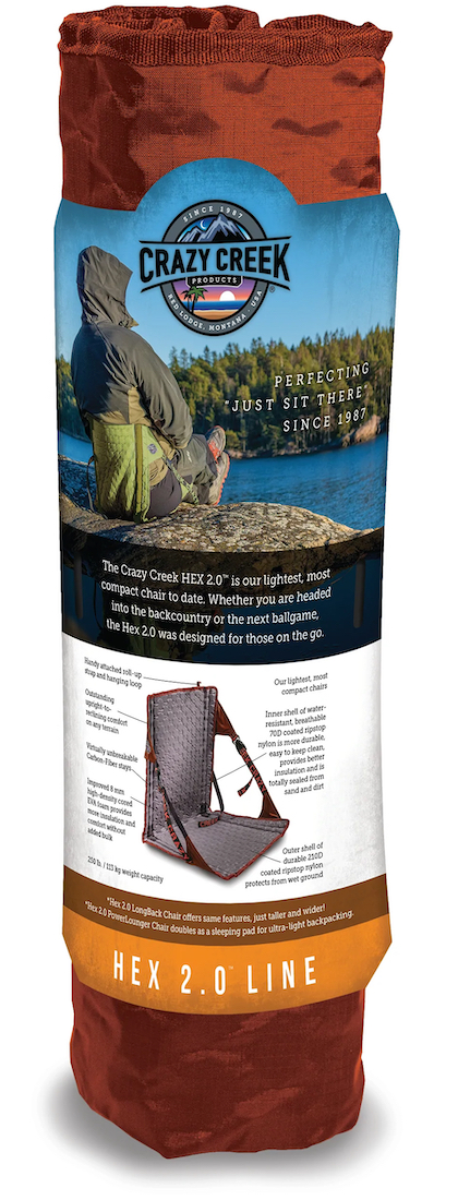 La HEX 2.0 LongBack Chair de Crazy Creek est une chaise extrêmement légère et confortable qui rendra tes pauses pêche et autres activités de plein air encore plus relaxantes.