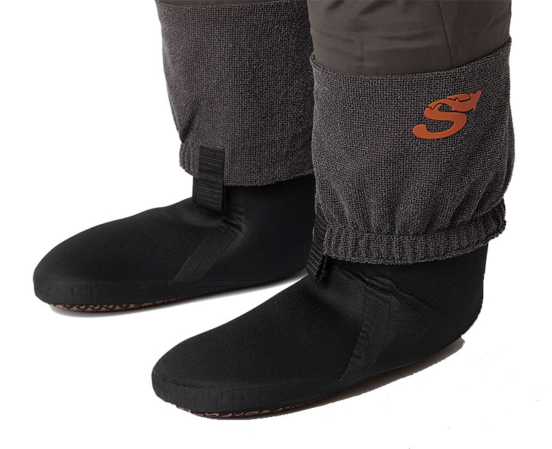- Protection intégrée contre les cailloux (Gravel Guards) avec crochet de sécurité à accrocher dans les chaussures de wading