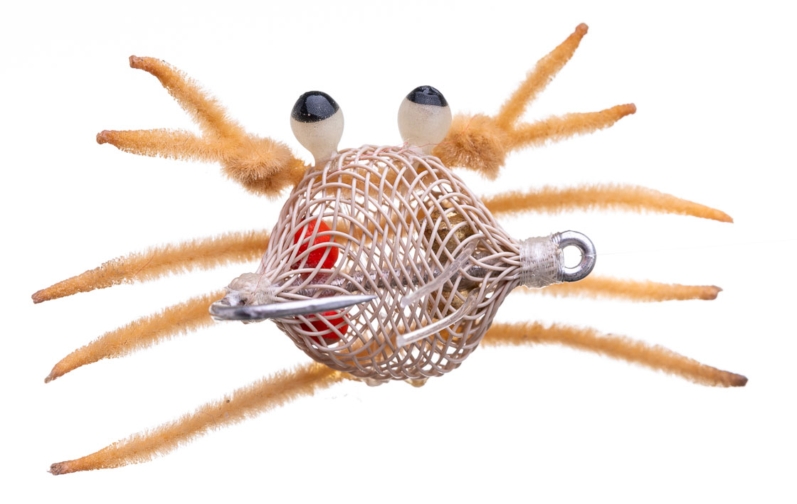 La Flexo Crab est une excellente mouche pour la pêche d'à peu près tout ce qui cherche des crabes sur les flats - que ce soit Permis, Triggerfish ou Bonefish. Elle est lestée avec des yeux en "dumbbell", ce qui lui permet de se présenter merveilleusement bien. Elle nage ainsi "up-side-down", ce qui lui permet de ne pas se prendre trop vite dans le Turtle Grass. De plus, la protection intégrée contre les herbes aide à la réussite des présentations. Il s'agit donc d'un modèle d'eau salée très bien pensé, avec des couleurs superbes, qui a fait ses preuves sur de nombreux flats des Caraïbes et de l'océan Indien.