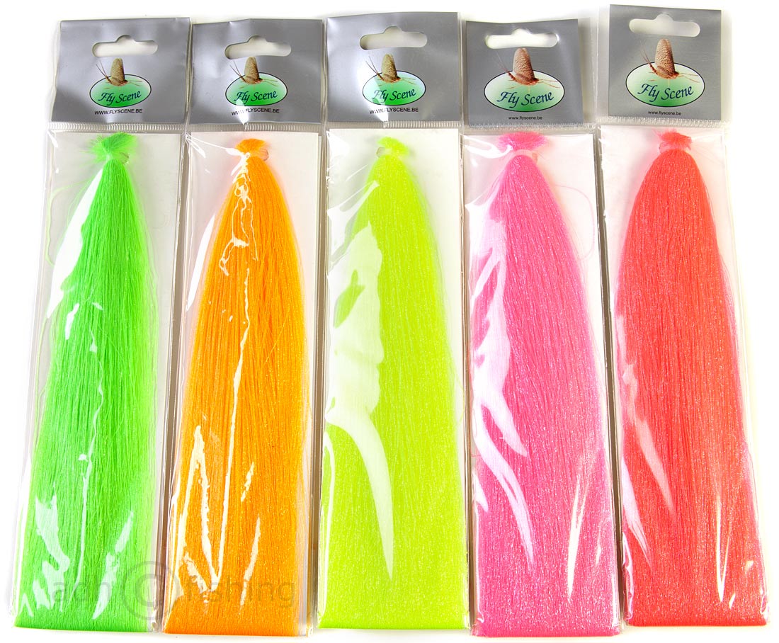 Le Fluo Twist Flash de Fly Scene est une fibre très souple et mobile. Deux fibres plus fortes sont enroulées autour d'une fibre fluorescente. Le tinsel synthétique est polyvalent et les monteurs de mouches l'utilisent volontiers pour les ailes ou les queues. De même, le Flash aux couleurs fluo vives peut être utilisé comme point fort dans les streamers. Les superbes couleurs offrent diverses possibilités d'utilisation et s'adressent à une multitude d'espèces de poissons différentes. Partout où il faut être un peu plus voyant et coloré, tu es bien conseillé avec ce matériau de fixation de Fly Scene. Le matériau absorbe la lumière et la renvoie trois fois plus forte. Il faut donc faire attention au dosage :)
