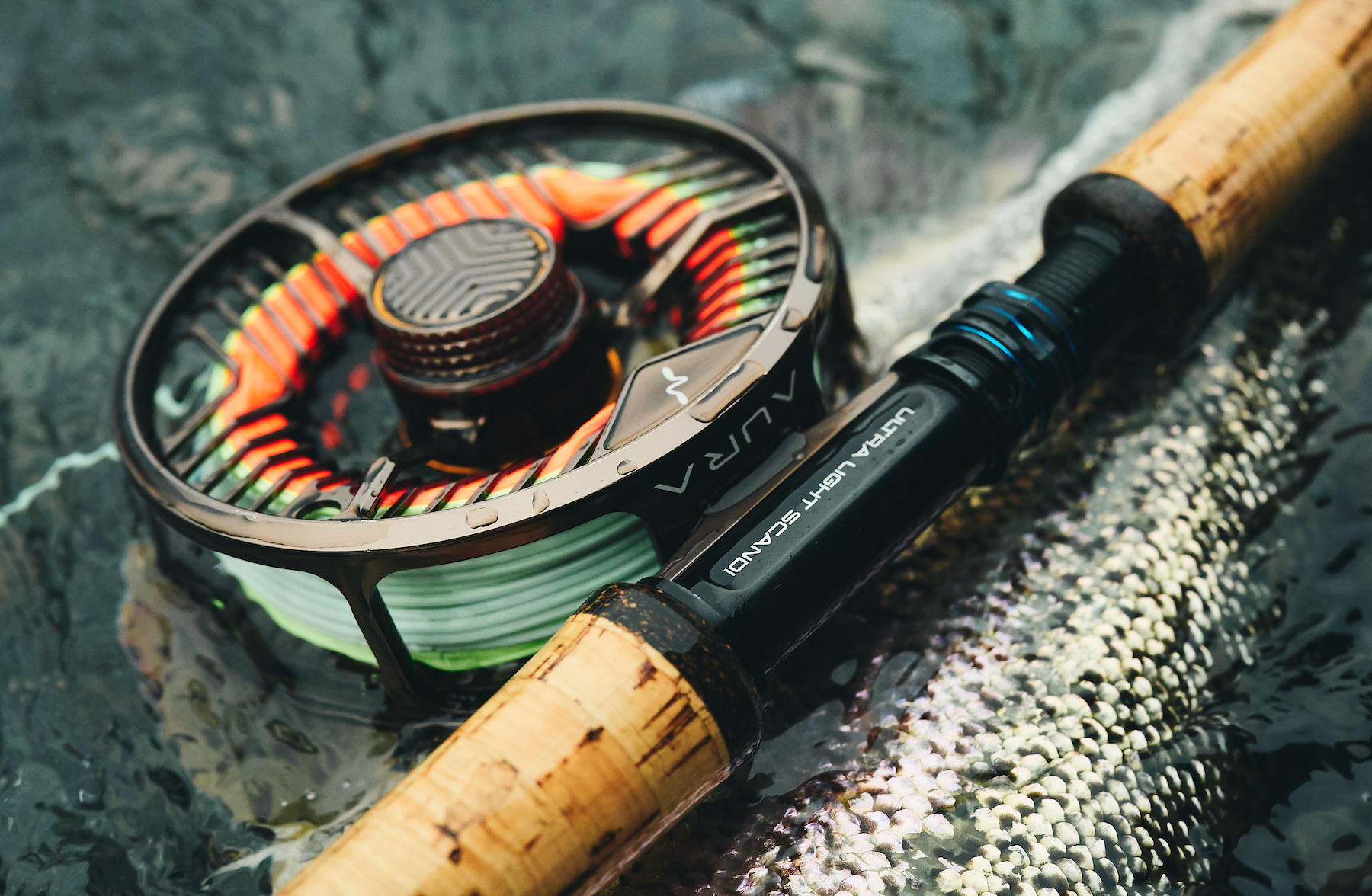 La série AURA comprend six tailles de moulinets et couvre ainsi tous les domaines de la pêche à une ou deux mains. Qu'il s'agisse d'une pêche précise à la truite, d'une pêche puissante à la truite de mer ou d'une pêche au saumon, chaque moulinet suit le principe d'une efficacité maximale pour un poids minimal et une esthétique raffinée et moderne.