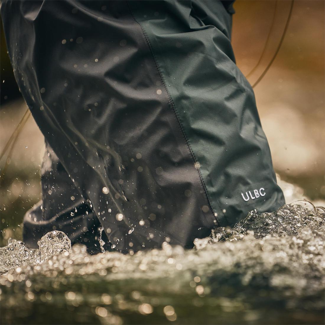 Le matériau des cuissardes ULCB est constitué de nylon recyclé à 2,5 couches, extensible mécaniquement dans les deux sens, à l'avant de la cuisse et au-dessus de la taille. Sous la taille, un tissu en nylon recyclé à 3,5 couches est utilisé. L'imperméabilité de 25 000 mm et la respirabilité de 8 000 g/m2/24h de l'ensemble des cuissardes n'ont pas besoin de se cacher derrière des cuissardes nettement plus lourdes.