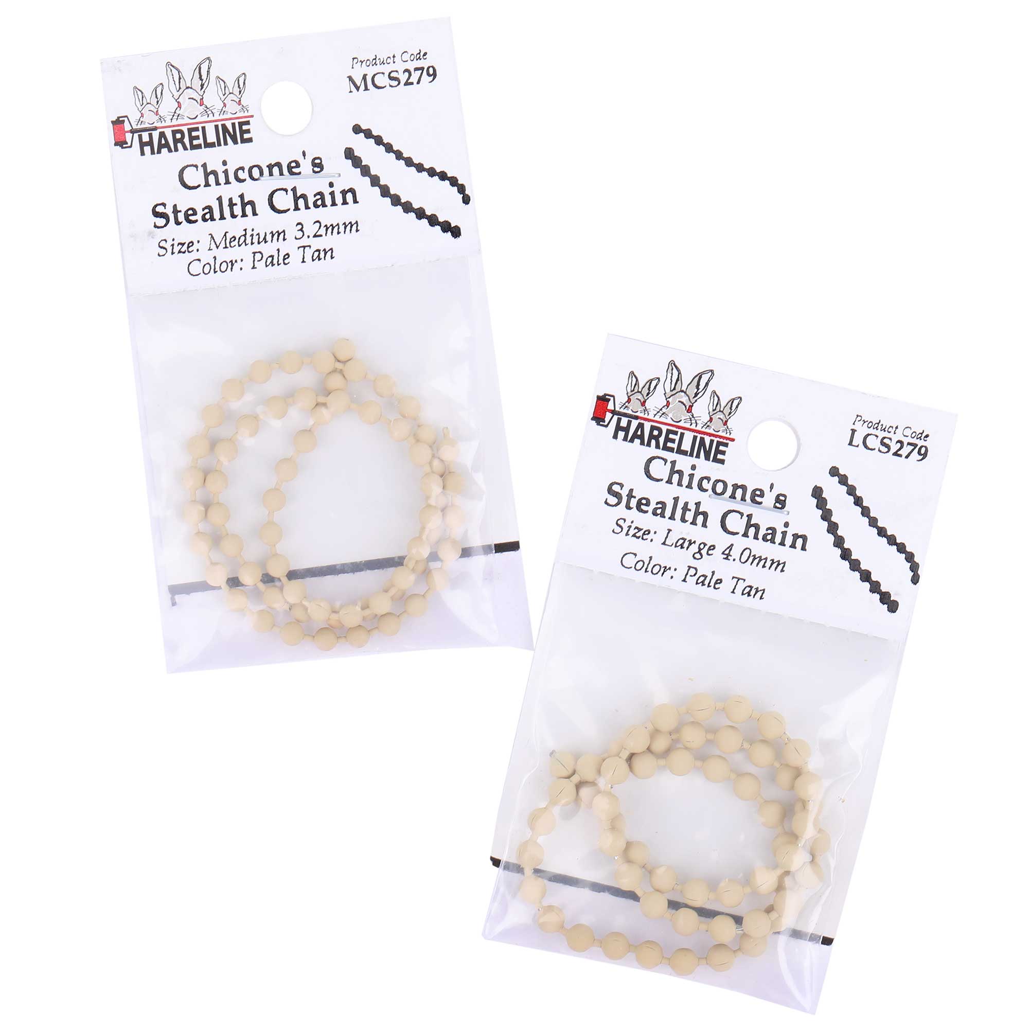 Informations sur les produits "Hareline Bead Chain Chicone's Stealth Chain yeux de chaîne à billes Pale Tan"