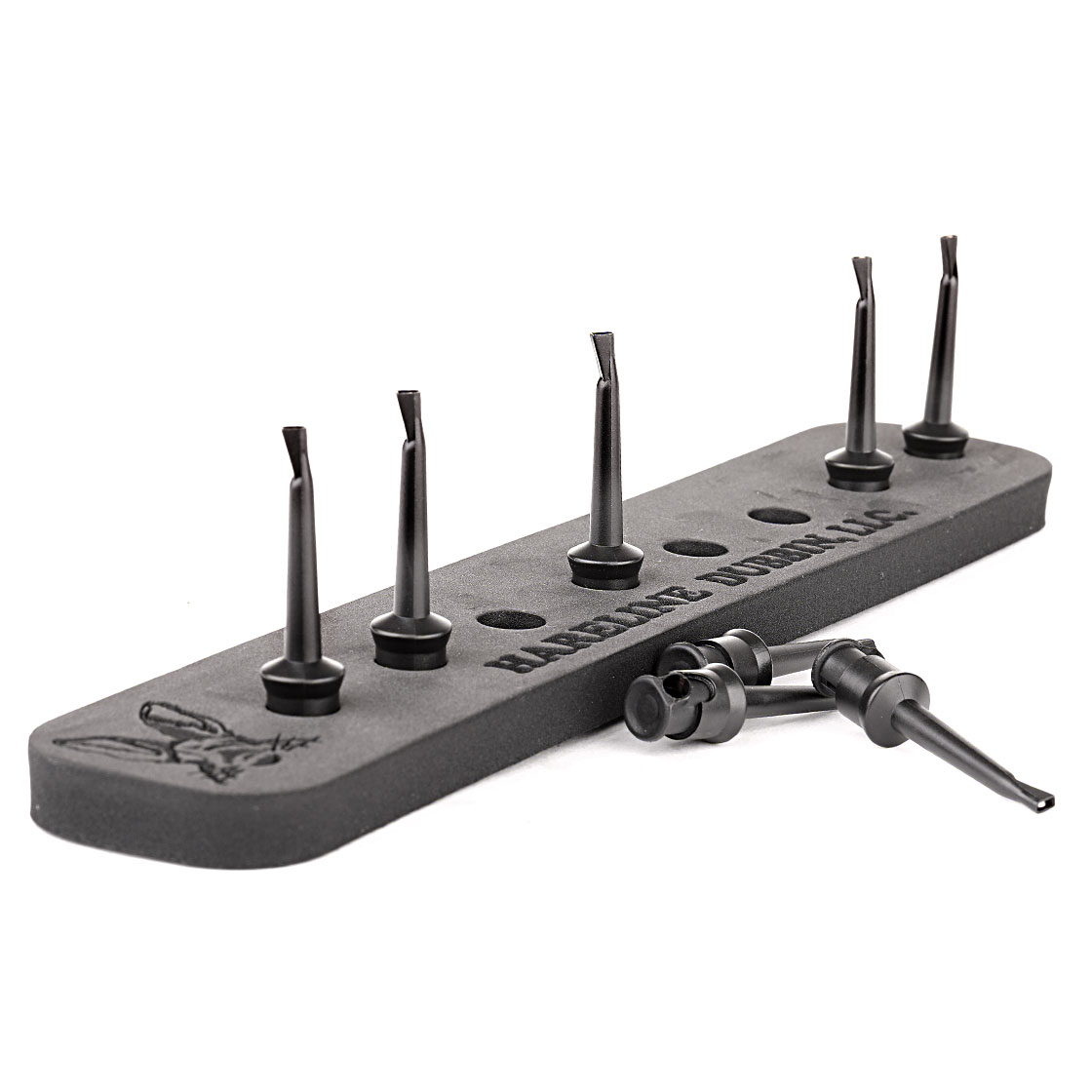 Le présentoir Fly Center Stage de Hareline est un bel ajout à ta table de montage. Que ce soit à la maison, lors d'une soirée d'affûtage conviviale ou lors d'un spectacle de fly ting. Le présentoir à mouches se compose d'une bande de mousse résistante avec le logo Hareline et de 8 pinces crocodiles. Les pinces saisissent l'hameçon en toute sécurité et permettent de présenter ou de faire sécher tes échantillons fraîchement attachés.