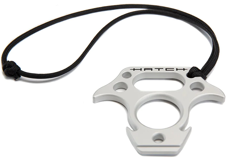 Le Hatch Knot Tension Tool est livré avec une sangle de sécurité pratique et solide pour le fixer sur un sac à dos, une poche de ceinture ou une ceinture. Ce multi-outil est fabriqué aux États-Unis en aluminium 6061 de haute qualité, léger et résistant à la corrosion. Pour attirer l'attention, l'outil Knot Tensoin est également doté de l'inscription Hatch en couleur, peinte à la main.