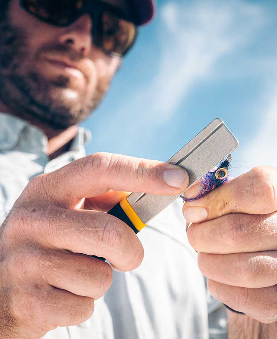 Mais ce n'est pas tout : Loon a intégré une autre fonctionnalité dans cet outil pratique : Un œillet pour tes hameçons et donc la possibilité d'utiliser l'outil également comme outil à nœuds. Hameçons pointus + nœuds solides = meilleures chances d'attraper un poisson.
