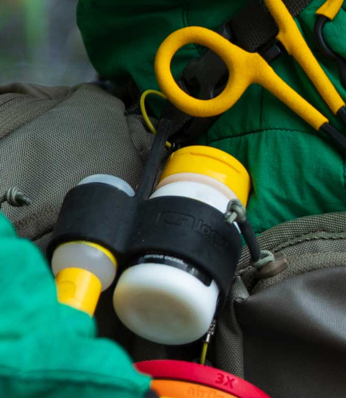 Le Loon Silicone Double Barrel Caddy Holder est une combinaison des porte-bouteilles Silicone Small et Madium de Loon. Une idée géniale, car il n'est pas rare que des poudres soient utilisées pour sécher les mouches avant de les réimprégner avec un gel. Ce porte-bouteilles à double fonction offre la possibilité de tenir les deux bouteilles côte à côte. Et ce, exactement de manière à ce que la poudre soit placée avec le bouchon vers le haut et le gel avec le bouchon vers le bas. Cette disposition garantit que le gel s'écoule toujours vers le couvercle, même s'il reste peu de contenu, et que la poudre ne peut pas s'écouler lors de l'ouverture du couvercle. Avec le Loon Silicone Double Barrel Caddy Holder, tu es parfaitement équipé et il peut être fixé partout, que ce soit sur une longe ou sur des sacs, des vestes ou des sacs à dos.