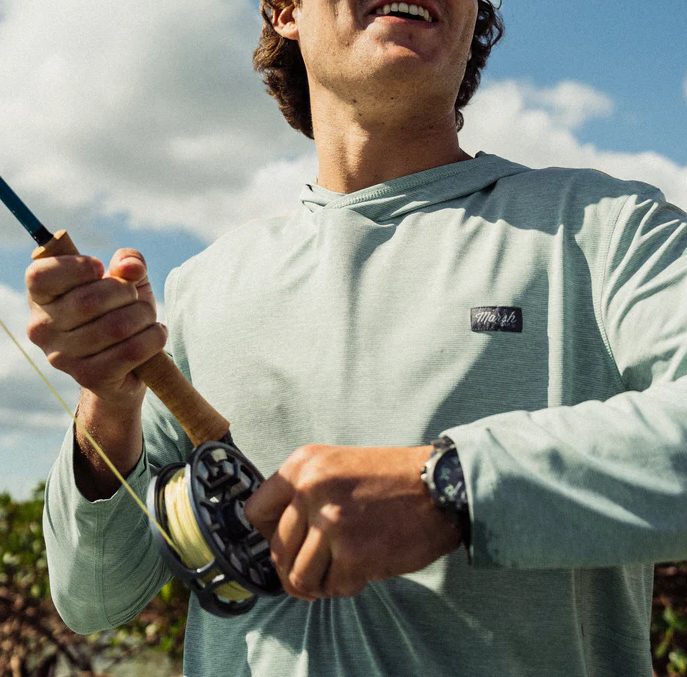 Le sweat à capuche High Noon UPF 40+ Sun Protection de Marsh Wear est le choix idéal pour les pêcheurs à la mouche qui recherchent à la fois protection et confort lors des journées ensoleillées, que ce soit sur leur plan d'eau ou en voyage dans des régions tropicales.