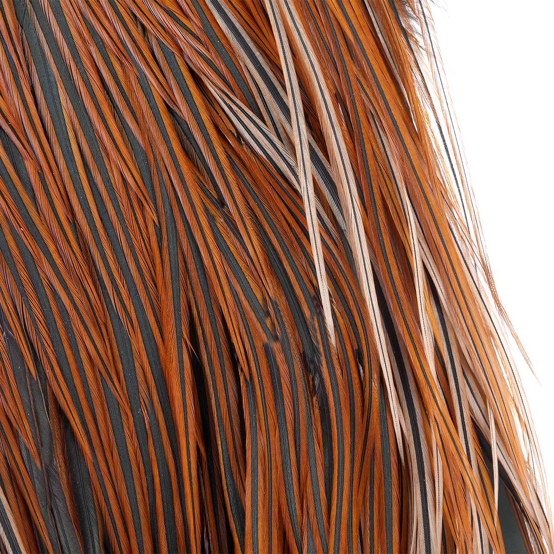 Par rapport aux cols, la variation de la longueur des fibres est nettement moins importante sur une selle. Cela rend la selle Metz Signature particulièrement adaptée aux monteurs qui souhaitent produire de nombreuses mouches sèches de tailles identiques ou similaires. La plupart des plumes conviennent parfaitement aux mouches de taille #8 à #18, bien qu'il s'agisse d'un produit naturel et que de légères variations soient possibles entre les différentes selles, ce qui permet de monter des mouches sur des hameçons plus grands, mais aussi plus petits.