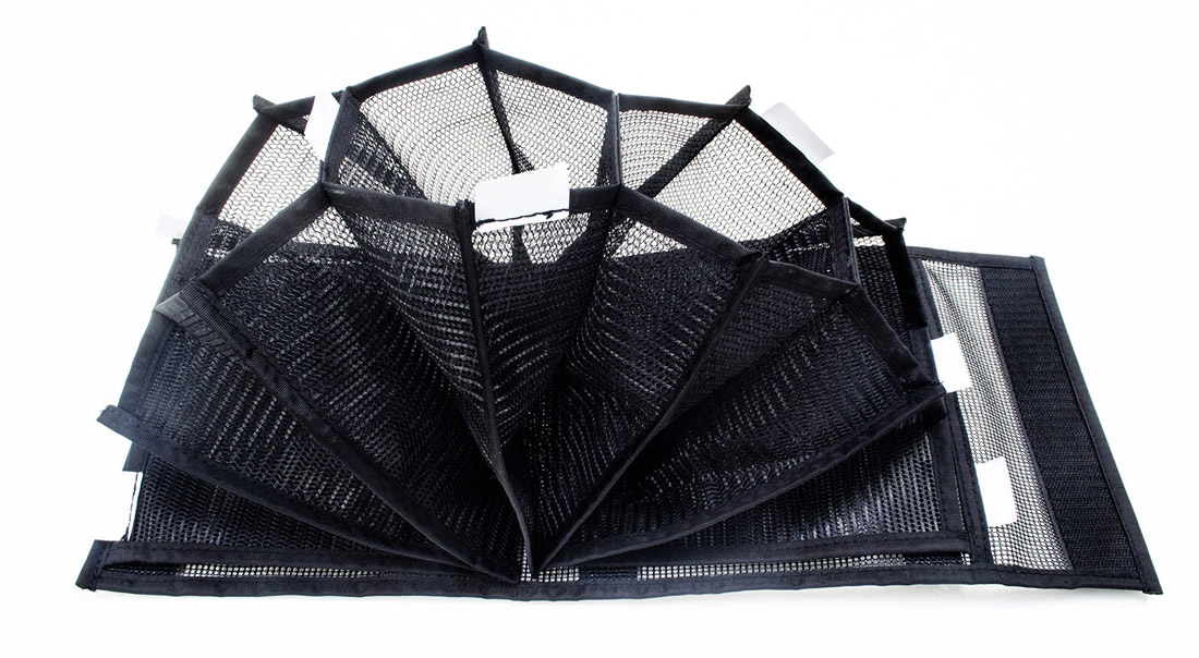 Le tissu mesh du Head Wallet permet à tes têtes de tir de sécher rapidement et évite ainsi l'apparition de bâton ou de moisissure sur les précieuses ficelles. La fermeture des différents compartiments (7 compartiments) est faite d'une bande velcro extra forte qui n'est pas sensible à la corrosion. Les étiquettes disposées en quinconce peuvent être étiquetées afin de pouvoir reconnaître d'un coup d'œil quelle tête de tir tu as rangée où. Ainsi, tu es toujours parfaitement organisé et tu as toutes tes têtes de tir sous les yeux et à portée de main.