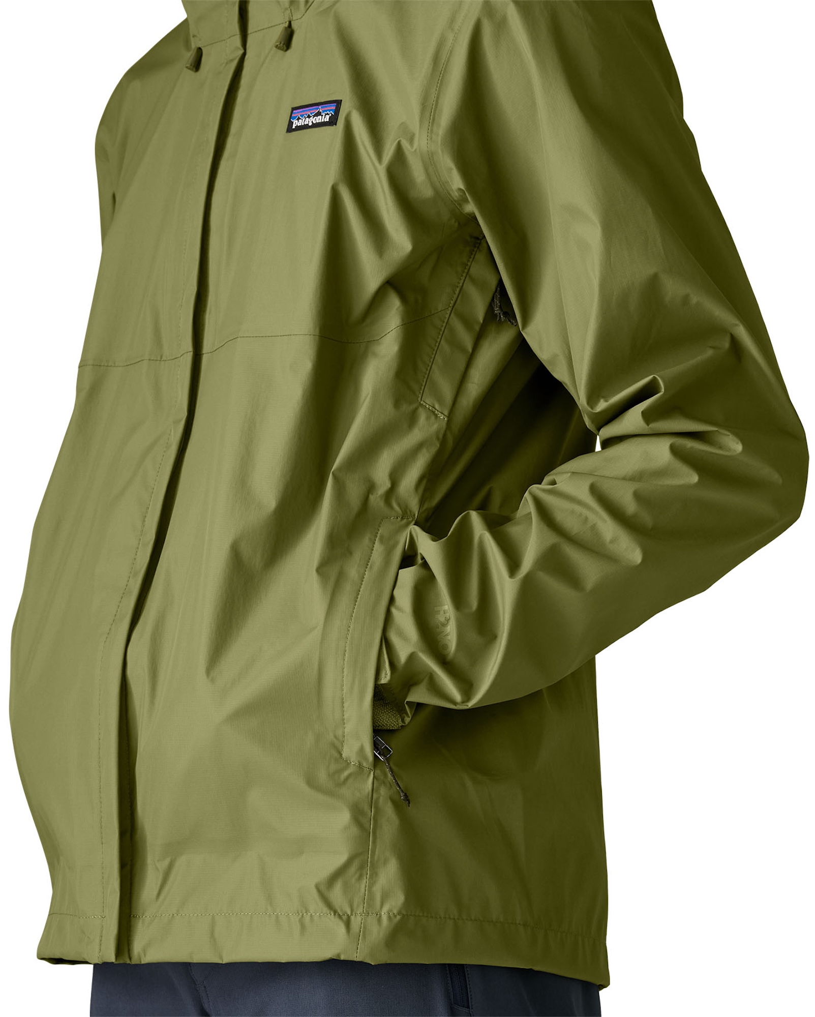 Elle répond à la norme H2No™ Performance de Patagonia et offre ainsi une fonctionnalité maximale en matière d'imperméabilité, de protection contre le vent et de respirabilité. Le tissu extérieur à trois couches, 100 % recyclé, garantit une protection durable contre l'humidité et, grâce à l'imprégnation durable DWR sans PFAS, te permet de te sentir bien - pour toi et pour l'environnement. La capuche à deux réglages et à visière laminée peut être enroulée si nécessaire et rangée de manière peu encombrante. Le col doublé en micropolaire est agréablement ajusté et empêche l'humidité de pénétrer. La fermeture à glissière frontale est conçue de manière à ne pas s'accrocher et offre une protection et un confort supplémentaires grâce aux doubles rails coupe-vent et à la protection du curseur. Deux poches chauffe-mains passepoilées et des fermetures à glissière sous les bras offrent des possibilités de rangement et de ventilation pratiques, tandis que l'ensemble de la veste peut être rangé dans sa poche gauche avec boucle à mousqueton. Les poignets en velcro et l'ourlet réglable empêchent le vent et la pluie de s'infiltrer.