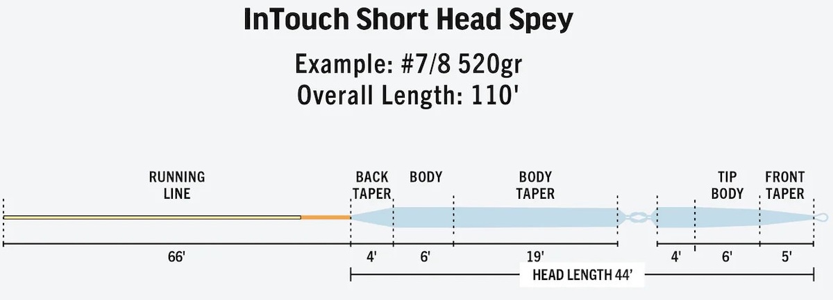 - Ligne traditionnelle Short Head Spey avec tête compacte idéale pour les eaux étroites.