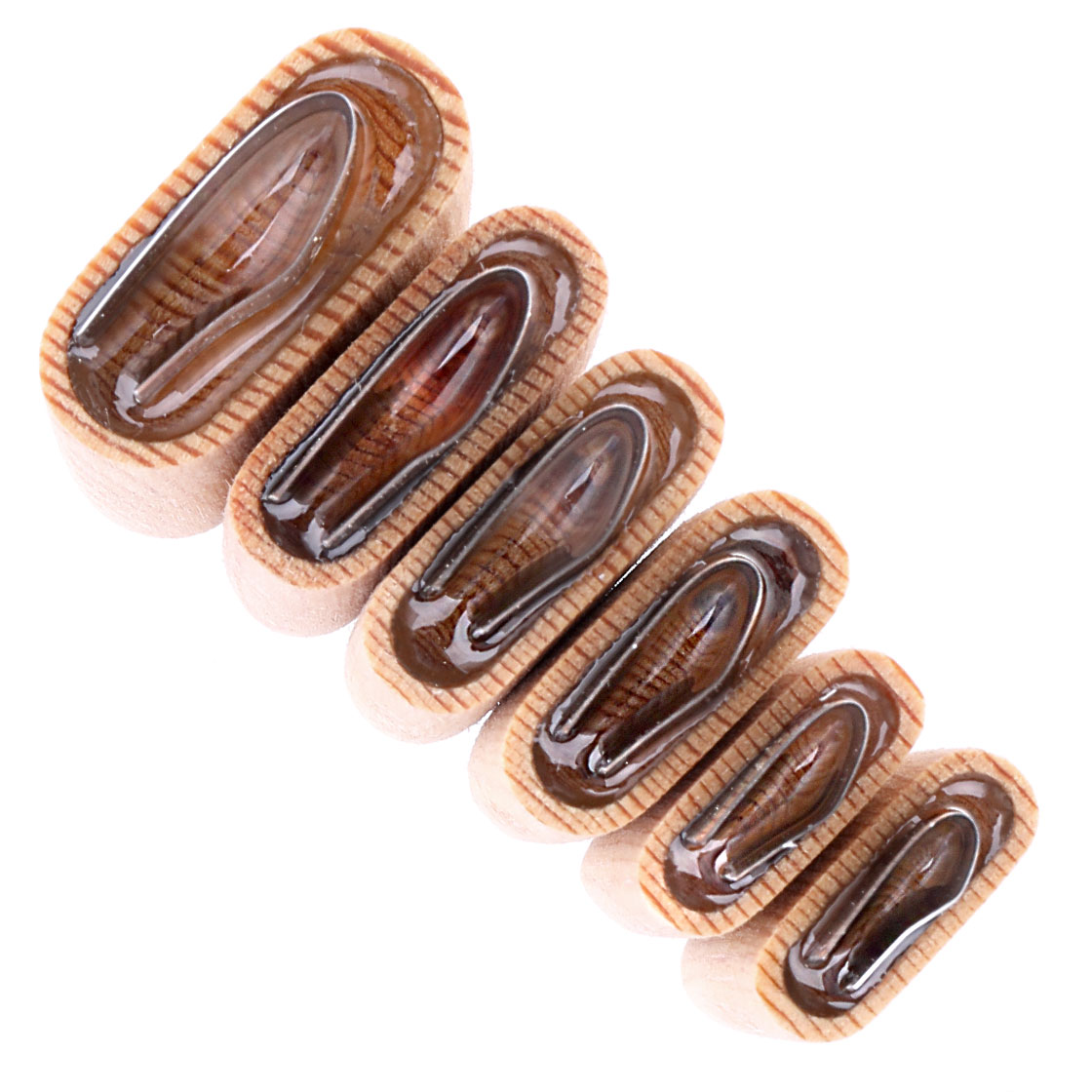 Avec le set complet River Road Creations Mayfly Wing Cutter , tu as le choix entre 6 tailles différentes pour découper des ailes de mouches de mai parfaites. Les lames de découpe enchâssées dans le bois sont suffisamment longues pour permettre de découper non seulement du film plastique, mais aussi de la mousse épaisse, qui assure une meilleure portance de tes mouches. De plus, les lames sont extrêmement tranchantes, de sorte que même les plumes sont découpées proprement pour obtenir des motifs de mouches super réalistes.