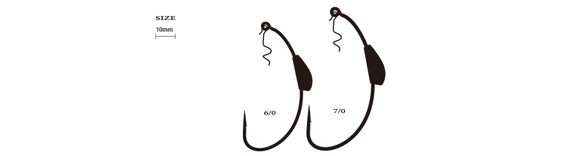Les Weighted Brutal sont de grands hameçons offset lestés, conçus pour être utilisés avec des élastiques, des twisters et de gros softjerks ou stickbaits.