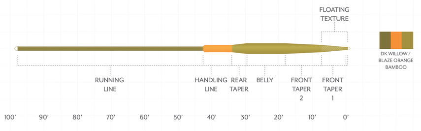 - Excellent contrôle de la ligne à courte et à longue distance. L'effilement convient aussi bien aux lancers au-dessus de la tête qu'aux lancers de type "spey".