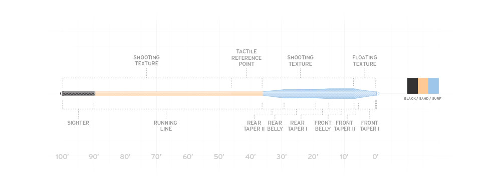 AST Plus Floating Texture Scientific Anglers Line Identification Shooting Texture Tactile Reference Point Tropi-Core Welded Loops
