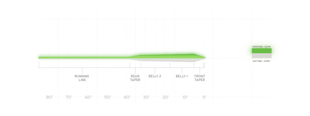 La Frequency Magnum Glow possède un revêtement qui brille dans l'obscurité, à condition de l'éclairer avec une lampe de poche ou, mieux encore, une lampe UV. Ce joli gadget peut s'avérer utile lors de la pêche nocturne de poissons cibles comme le sandre ou la truite de mer. En plus d'un meilleur contrôle de la ligne, la Frequency Magnum Glow te permet d'estimer plus facilement la position de ta mouche et la longueur de tes lancers dans les nuits sombres et de percevoir visuellement les touches via la ligne. De plus, il est très amusant de lancer des boucles lumineuses dans le ciel nocturne ;)