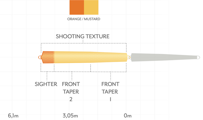 - Design multicolore avec zone de transition orange pour un contraste parfait avec la ligne de running - permet de bien s'orienter lors de la pêche et d'avoir le bon dévers de la tête de tir pendant la préparation du lancer.