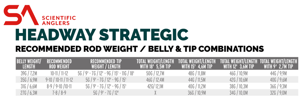 Avec le nouveau Headway Strategic Belly, Scientific Anglers présente une fantastique tête de tir à deux mains pour le swing sur les grands salmonidés - qu'il s'agisse de saumon, de truite de mer ou de Steelhead. La Headway STRATEGIC fait partie de la famille des Headway de Scientific Anglers et est légèrement plus courte que la Headway normale.