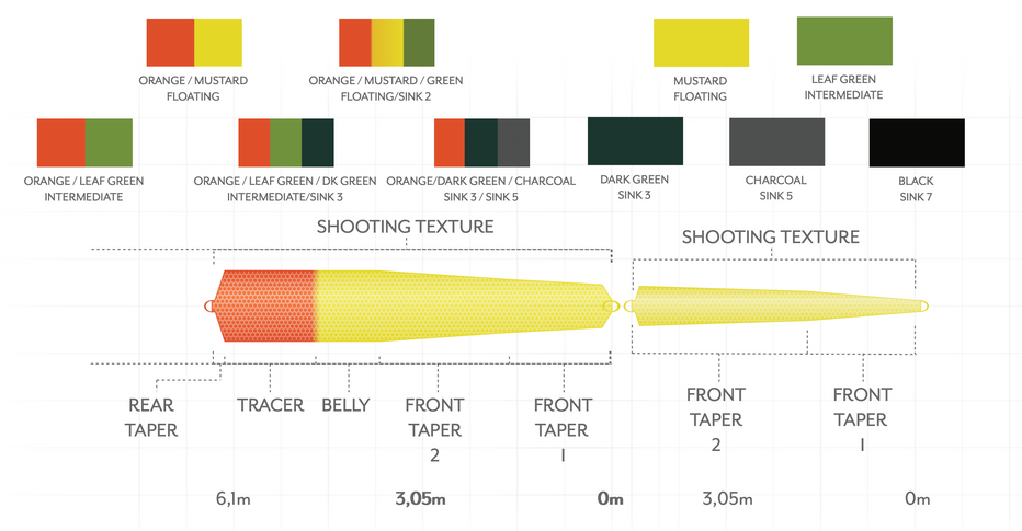 Tant les têtes de tir Headway que les embouts Headway sont disponibles dans différentes longueurs et les poids qui en résultent. Tu peux ainsi composer un setup de ligne parfait qui correspond exactement à tes attentes. Le poids total de la tête de tir et du tip doit correspondre à peu près au poids de lancer idéal de ta canne. Pour le set-up final, la règle de base est toujours la suivante : un set-up de ligne plus court est généralement plus facile à lancer. Au contraire, une combinaison plus longue permet des lancers un peu plus longs et nécessite moins de stripping après chaque swing. À toi de choisir !
