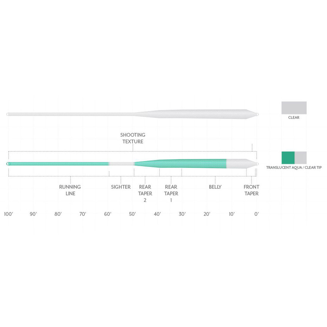 - Shooting Texture Runningline : permet des lancers plus longs, réduit les frottements dans les anneaux et améliore la flottabilité & la durabilité.