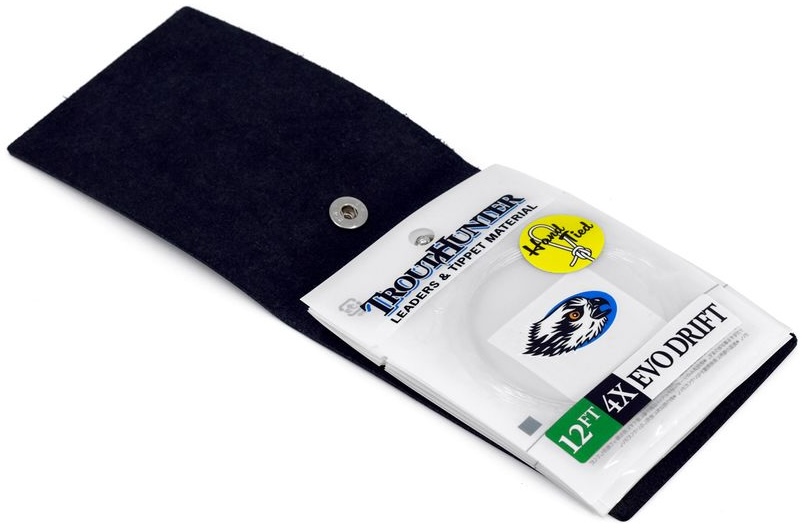 Le Trout Hunter Leader Wallet est un sac à bas de ligne en cuir véritable. Le sac pour bas de ligne est conçu pour transporter tes bas de ligne en toute sécurité, les maintenir ensemble et surtout les protéger du soleil.