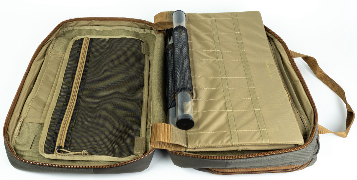 Le sac de fixation Umpqua ZS2 Traveler Fly Tying Kit Bag est un véritable talent d'organisation, que ce soit sur la table de montage ou en voyage. Tout est bien rangé, idéalement sécurisé, bien organisé et rapidement à portée de main - travailler devient un plaisir !
