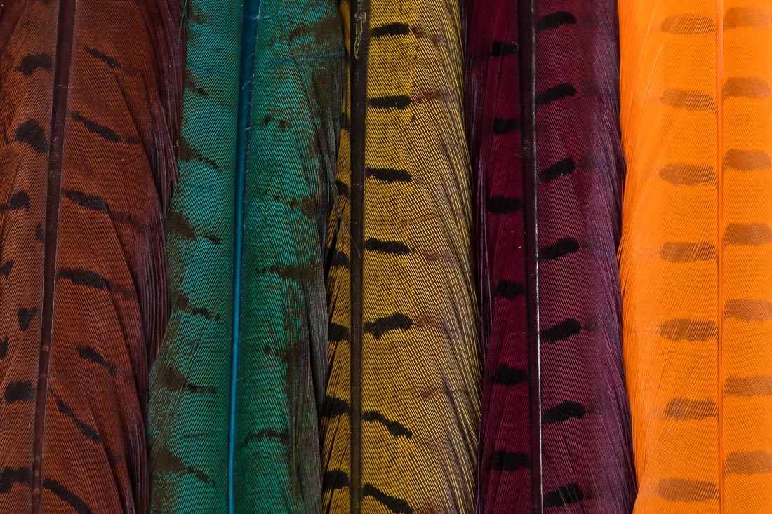 Les plumes de queue de faisan de chasse ont de multiples usages et ne devraient manquer sur aucune table de montage. Elles permettent de lier toutes sortes de mouches sèches, de nymphes et de mouches noyées. Classiquement, cette plume est utilisée pour imiter les queues, les corps et les gaines d'ailes. La plus connue est sans doute la "Pheasant Tail Nymphe", qui est presque entièrement composée de faisan de chasse. Le matériau naturel possède de superbes nuances et confère à ton motif un aspect réaliste.