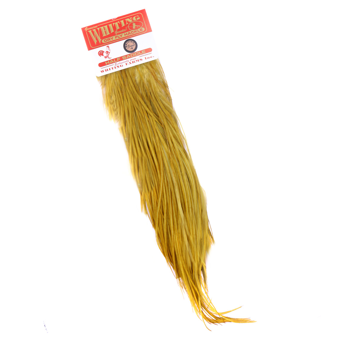 Les selles en bronze représentent l'équilibre parfait entre qualité et prix abordable. Une plume couvre généralement 6 à 8 tailles d'hameçons (par exemple #10-18), elle est facile à travailler et constitue le bon choix pour 90% des monteurs de mouches. Pour une proportion parfaite des mouches sèches, on peut en outre utiliser un gabarit de hameçon de Whiting, ce qui permet de toujours savoir quel hameçon correspond à quelle taille d'hameçon.